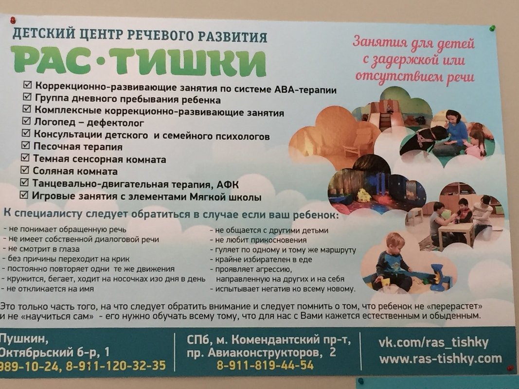 Профессиональный персонал работает с моими детьми, у которых благодаря занятиям есть успехи. Ребятки всем довольны! Дочка ходит к логопеду, чтобы ставить звуки, а у младшего сына мы запускаем речь. Сотрудники, дефектолог Александра и логопед Ирина, тактично, доброжелательно проводят занятия.